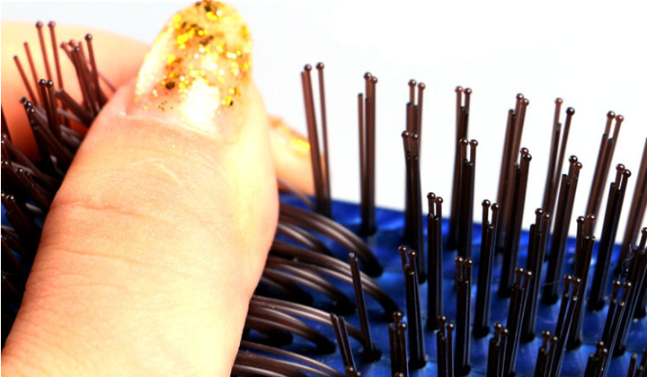 3、特制尼龍梳齒,梳針部分添加尼龍成分柔軟有彈性,可輕松打開頭發(fā)打結(jié)部分。